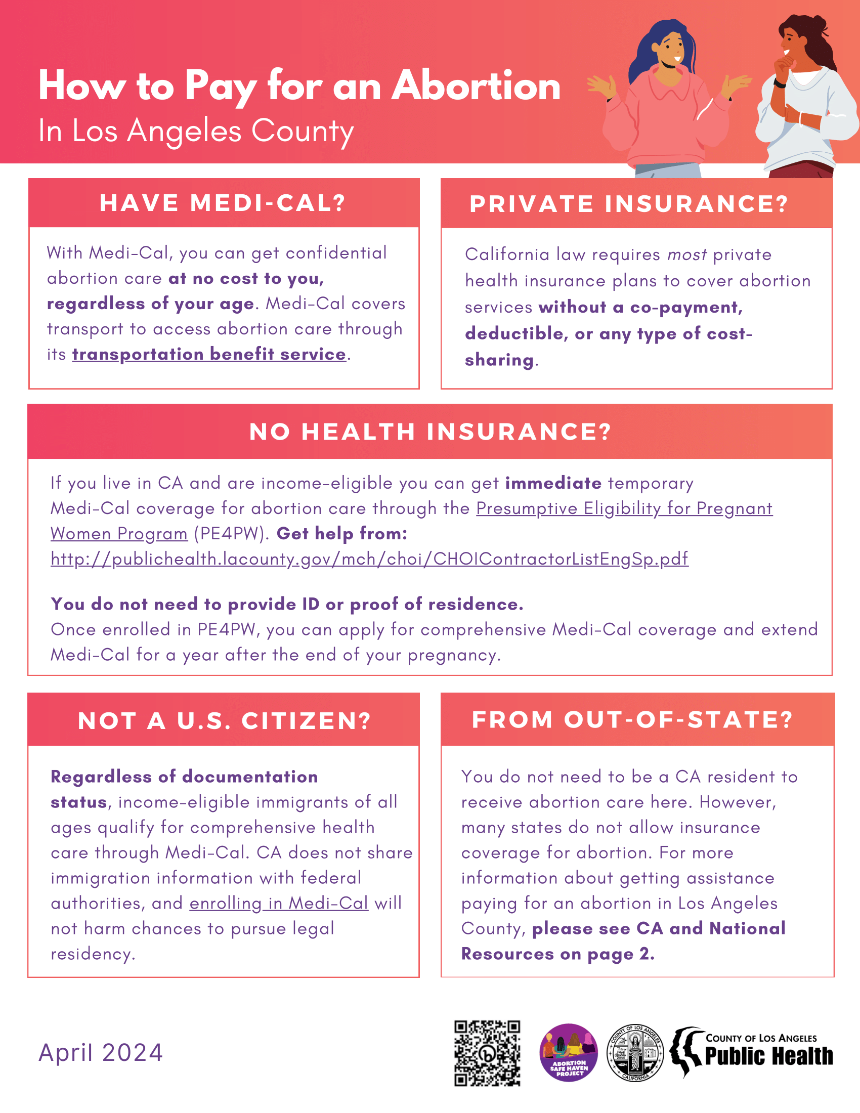 If you or someone you know need resources to access an abortion, and you need more help, you can email AbortionLAC@ph.lacounty.gov.