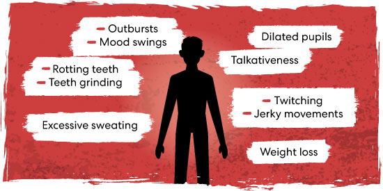 People who use methamphetamine habitually may exhibit symptoms that can include significant anxiety, confusion, insomnia, mood disturbances, and violent behavior.